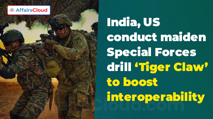The inaugural edition of the joint special forces exercise “Tiger Claw” between the Indian Air Force (IAF)’s Garud Commandos and the United States Air Force (USAF) concluded successfully at the Garud Regimental Training Centre(GRTC) at Chandinagar, Baghpat district,in Uttar Pradesh(UP).