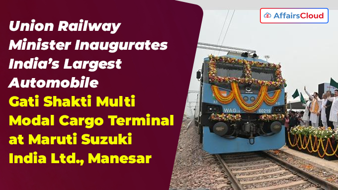 On June 17, 2025, Union Minister Ashwini Vaishnaw, Ministry of Railways (MoR), Ministry of Information & Broadcasting (MIB), and Ministry of Electronics & Information (MeitY), inaugurated India’s largest Gati Shakti Multi-Modal Cargo Terminal at Maruti Suzuki India Limited’s Manesar plant in Haryana.