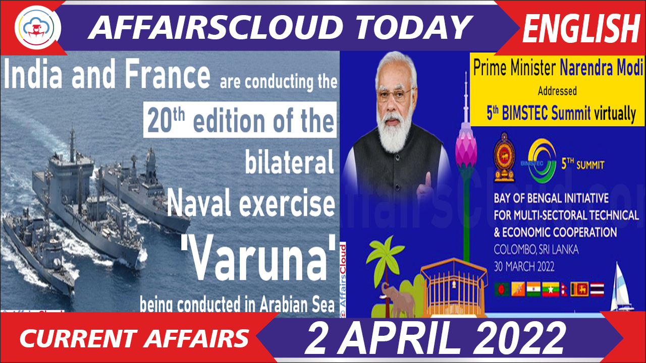 Current Affairs 2 April 2022 English