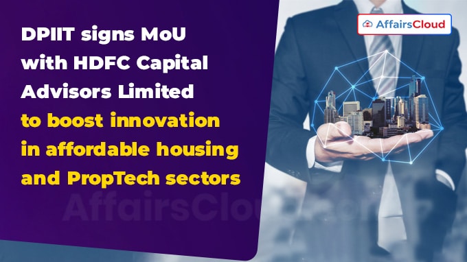 DPIIT Signs MoU with HDFC Capital Advisors Limited to Promote Affordable Housing and PropTech SectorsOn July 31, 2025, the Department for Promotion of Industry and Internal Trade (DPIIT), Ministry of Commerce and Industry (MoC&I), signed a Memorandum of Understanding (MoU) with HDFC Capital Advisors Limited (HDFC Capital), a subsidiary of HDFC Bank Limited, to promote innovation in the affordable housing and Property Technology (PropTech) sectors.