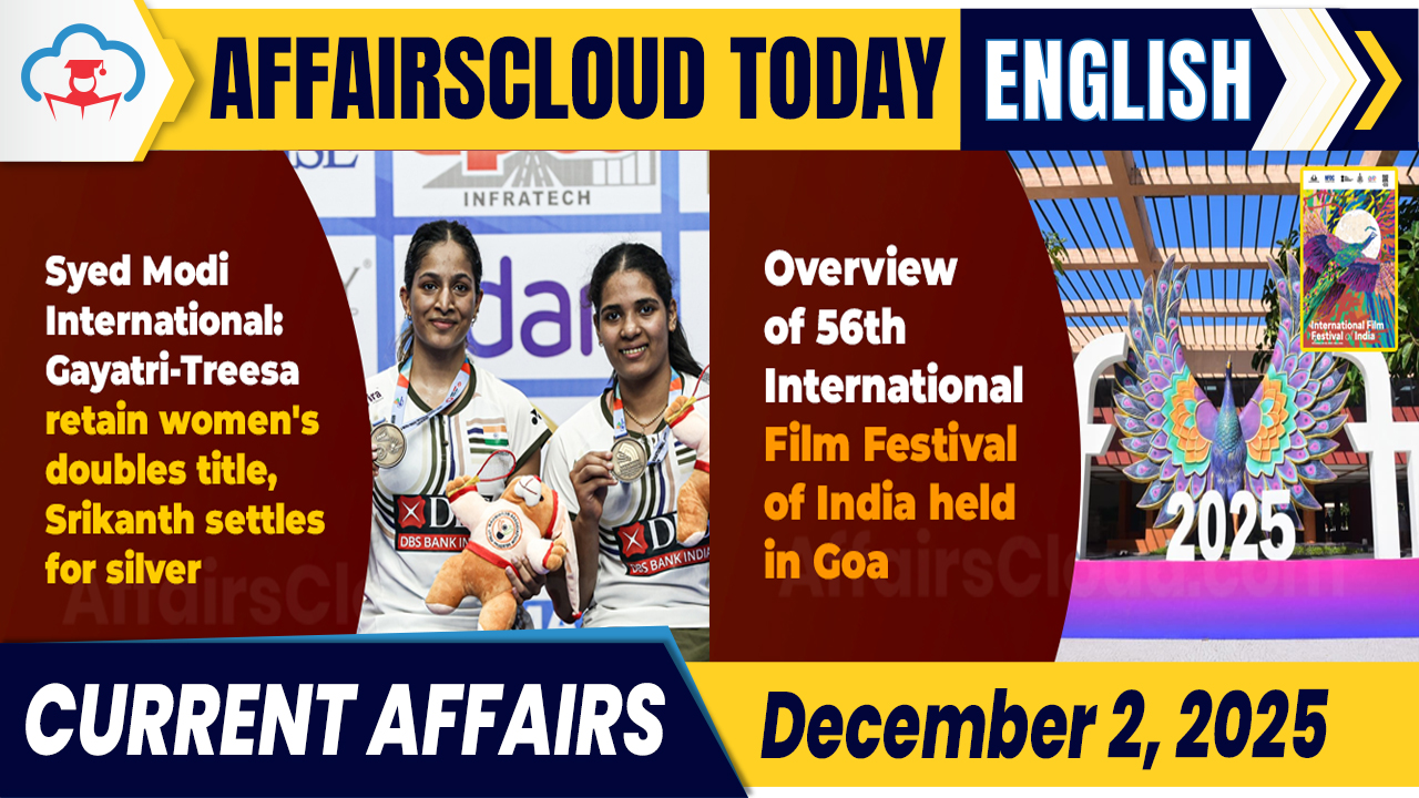 We are here for you to provide the important Recent and Latest Current Affairs December 2 2025, which have unique updates of Latest Current Affairs 2025 events from all newspapers such as The Hindu, The Economic Times, PIB, Times of India, PTI, Indian Express, Business Standard and all Government official websites.