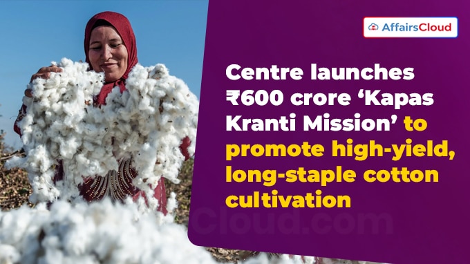 | Govt Launched Rs 600 Crore ‘Kapas Kranti Mission’ to Promote High-Yield, Long Staple Cotton Cultivation |