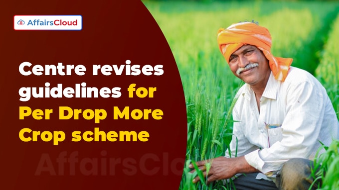 In October 2025, the Department of Agriculture and Farmers Welfare (DoAFW), Ministry of Agriculture and Farmers Welfare (MoAFW), revised the guidelines for ‘Per Drop More Crop (PDMC) scheme’, with an aim to promote efficient water use and raise the income of farmers.