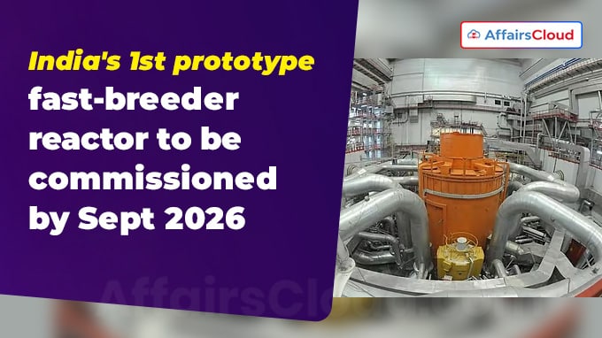 According to Department of Atomic Energy (DAE), under the Prime Minister(PM’s) Office, India’s first 500 MegaWatt (MW) Prototype Fast Breeder Reactor (PFBR) at Kalpakkam near Chennai, Tamil Nadu (TN) is expected to attain 1st criticality by March 2026, while the reactor will be completely operationalised by September 2026.
