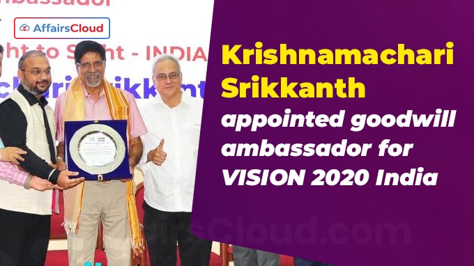 On March 19, 2025, Krishnamachari Srikkanth, former captain of the Indian national cricket team, has been appointed as the Goodwill Ambassador for ‘VISION 2020 India’, a national initiative focused on eliminating avoidable blindness and visual impairment across India.