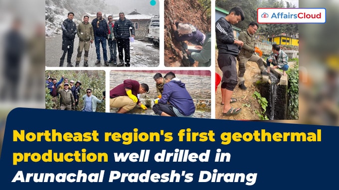 In May 2025, the Itanagar (Arunachal Pradesh, AR)-based Centre for Earth Sciences and Himalayan Studies (CESHS), an autonomous body under the Department of Science & Technology, Government of AR, successfully drilled the Northeast Region’s first Geothermal production well in Dirang village of West Kamal district in AR, marking a major step towards clean and sustainable energy in the Himalayan region.