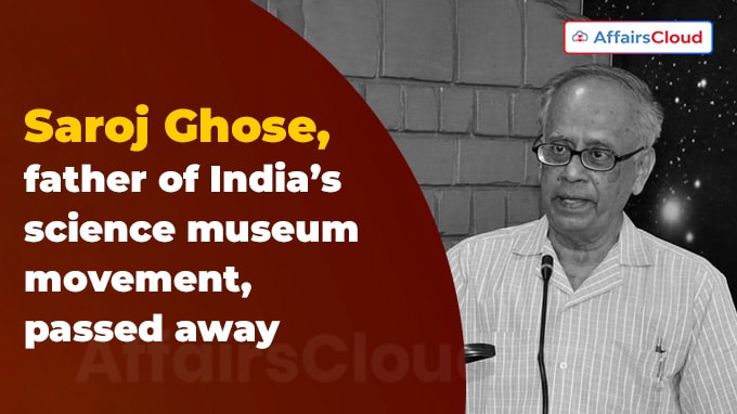 In May 2025, Dr. Saroj Ghose, Founding Director General of National Council of Science Museums (NSCM), Ministry of Culture (MoC) and the Father of India’s Science Museum Movement, has passed away at the age of 89 in Seattle, United States of America (USA).