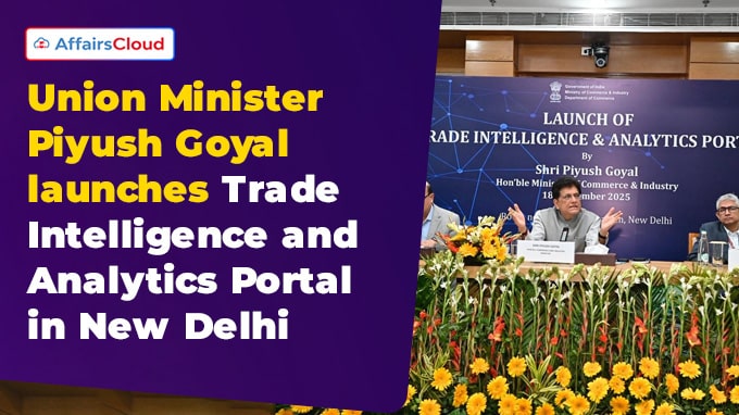 On 18 November 2025, Union Minister Piyush Goyal, Ministry of Commerce and Industry (MoC&I), launched the Trade Intelligence & Analytics (TIA) Portal in New Delhi, Delhi.