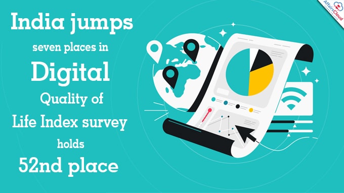 | डिजिटल क्वालिटी ऑफ लाइफ इंडेक्स 2023 में भारत 52वें स्थान पर है; फ्रांस शीर्ष पर है |