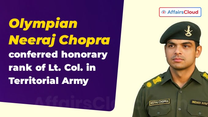 | Neeraj Chopra Conferred Honorary Lieutenant Colonel Rank in TA |