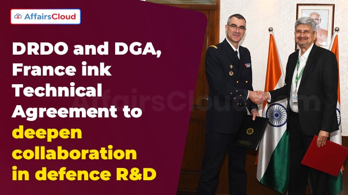On November 20, 2025, the Defence Research & Development Organization (DRDO), India, and the Directorate General of Armaments (DGA), France, signed a Technical Agreement to strengthen long-term collaboration in defence research, innovation, and advanced technology development.
