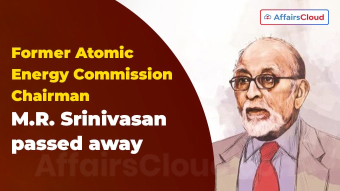 On May 20, 2025, the Former Chairman of Mumbai(Maharashtra) based Atomic Energy Commission (AEC) of India, and key architect of India’s nuclear energy programme Malur Ramasamy (M.R) Srinivasan has passed away at the age of 95 in Ooty, Tamil Nadu (TN).