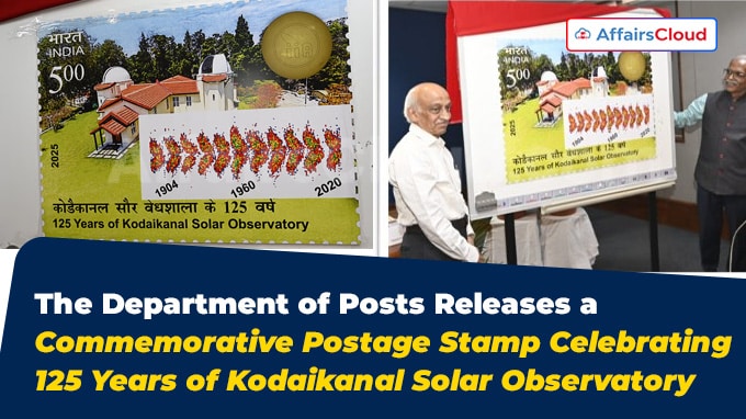 In May 2025, the Department of Posts (DoP) (Formerly known as India Post), under the Ministry of Communications (MoC), Government of India (GoI) has released a commemorative postage stamp of denomination Rs.5, celebrating 125 years of Tamil Nadu (TN) based Kodaikanal Solar Observatory (KSO) at an event held in Indian Institute of Astrophysics (IIA) in Bengaluru, Karnataka.