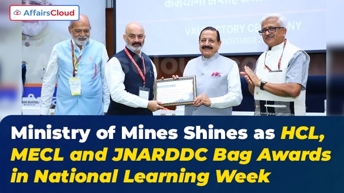 | खान मंत्रालय के अंतर्गत HCL, MECL & JNARDDC को राष्ट्रीय शिक्षण सप्ताह के दौरान उत्कृष्ट प्रदर्शन के लिए पुरस्कार मिला |