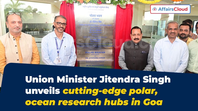 On May 20, 2025, Union Minister of State (MoS) (Independent Charge, IC) Dr. Jitendra Singh, Ministry of Science & Technology (MoS&T) inaugurated ‘Sagar Bhavan’ and ‘Polar Bhavan’ at National Centre of Polar and Ocean Research (NCPOR) in at Vasco da Gama ,Goa.