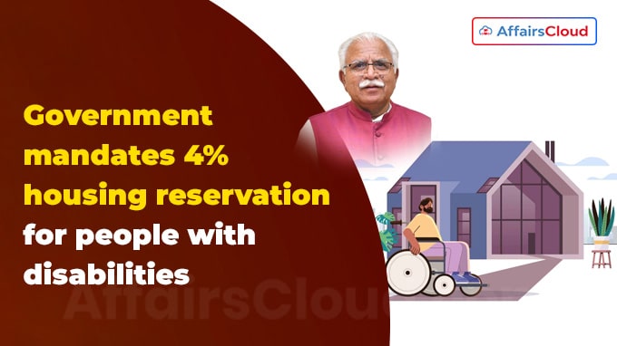 In May 2025, the Ministry of Housing & Urban Affairs (MoHUA) announced to provide 4% reservation for Persons with Disabilities (PwDs) in the allotment of government housing under the General Pool Residential Accommodation (GPRA) category which will cover houses up to Type 5, benefitting officials from Assistant Section Officer (ASO) level to Director rank.