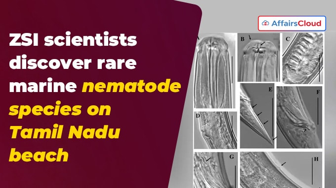 In May 2025, a research team from Kolkata (West Bengal, WB) based Zoological Survey of India (ZSI), an autonomous institution under the Ministry of Environment, Forest and Climate Change (MoEFCC), identified a new species of free-living marine nematode named Pheronous Jairajpurii Datta & Rizvi, 2025 on a sandy beach along the Tamil Nadu (TN) coast.