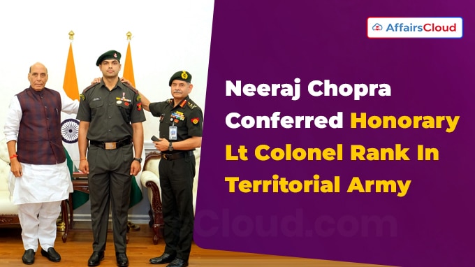 | Neeraj Chopra Honored with rank of Lieutenant Colonel in Territorial Army |