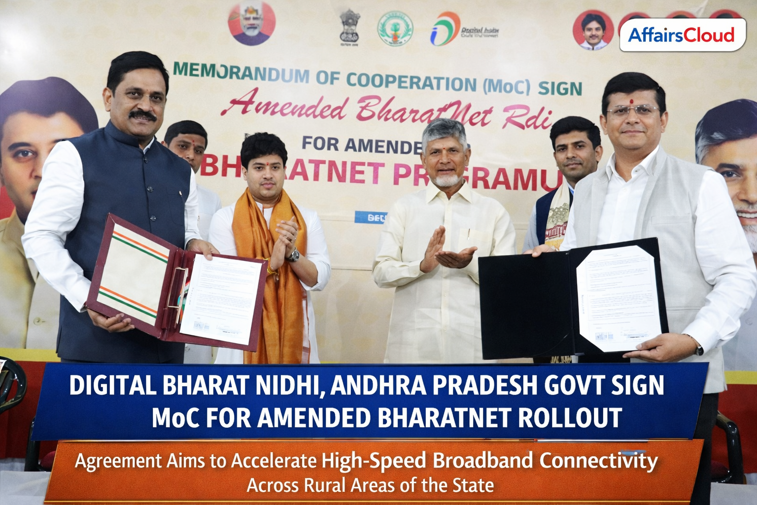 In February 2026, Digital Bharat Nidhi (DBN) under the Department of Telecommunications (DoT), Ministry of Communications, signed a Memorandum of Cooperation (MoC) with the Andhra Pradesh (AP) Government for the expedited implementation of the Amended BharatNet Programme (ABP) in the state.