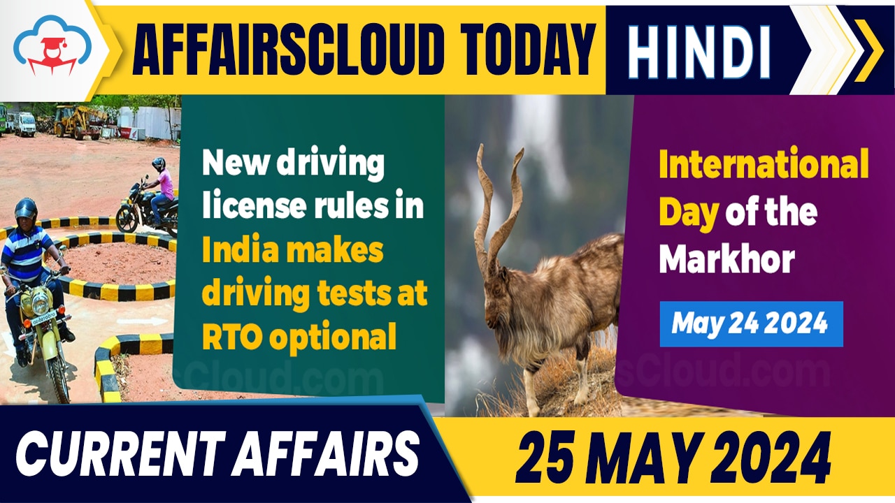 लो दोस्तों, affairscloud.com में आपका स्वागत है। हम यहां आपके लिए 25 मई 2024 के महत्वपूर्ण करंटअफेयर्स को विभिन्न अख़बारों जैसे द हिंदू, द इकोनॉमिक टाइम्स, PIB, टाइम्स ऑफ इंडिया, इंडिया टुडे, इंडियन एक्सप्रेस, बिजनेस स्टैंडर्ड,जागरण से चुन करके एक अनूठे रूप में पेश करते हैं। हमारे Current Affairs से आपको बैंकिंग, बीमा, UPSC, SSC, CLAT, रेलवे और अन्य सभी प्रतियोगी परीक्षाओं में अच्छे अंक प्राप्त करने में मदद मिलेगी