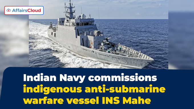 | Indian Navy Commissions Indigenously Built ASW-SWC ‘INS Mahe’ in Mumbai, Maharashtra |