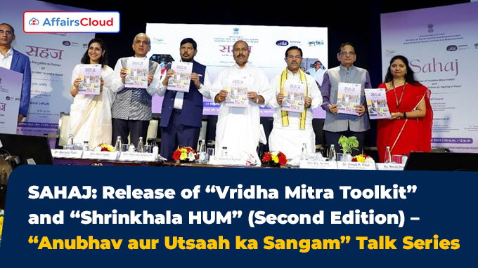 MSJE Launches ‘Vriddha Mitra Toolkit’ and  2nd Edition of Shrinkhala HUM Talk SeriesIn September 2025, Union Minister Dr. Virendra Kumar Khatik, Ministry of Social Justice and Empowerment (MSJE) has launched the two flagship initiatives of the Department of Social Justice and Empowerment (DoSJE), the release of Vriddha Mitra Toolkit’ under Supportive Action for Healthy Aging in the Community(SAHAJ) program and the ‘2nd edition of Shrinkhala Talk Series’, during an event held at Dr. Ambedkar International Centre in New Delhi, Delhi.
