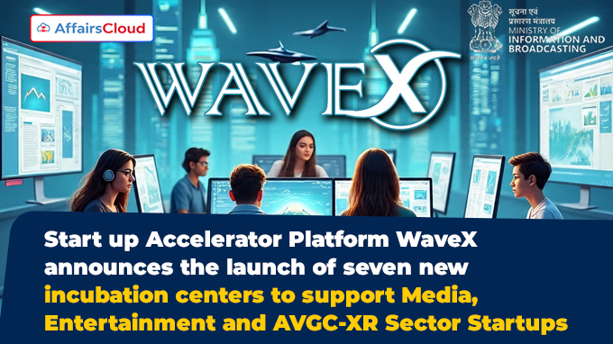 MIB Announced the Launch of Seven New Incubation Centres of WaveXIn September 2025, the Ministry of Information and Broadcasting (MIB) announced the expansion of its startup accelerator WaveX, with the launch of seven new incubation centres across India under the WAVES (World Audio Visual & Entertainment Summit) initiative.