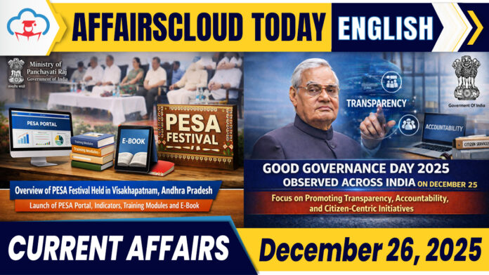 We are here for you to provide the important Recent and Latest Current Affairs December 26 2025, which have unique updates of Latest Current Affairs 2025 events from all newspapers such as The Hindu, The Economic Times, PIB, Times of India, PTI, Indian Express, Business Standard and all Government official websites.