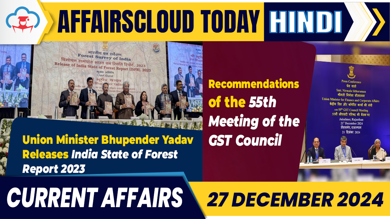 दोस्तों, affairscloud.com में आपका स्वागत है। हम यहां आपके लिए 27 दिसंबर 2024 के महत्वपूर्ण करंटअफेयर्स को विभिन्न अख़बारों जैसे द हिंदू, द इकोनॉमिक टाइम्स, PIB, टाइम्स ऑफ इंडिया, इंडिया टुडे, इंडियन एक्सप्रेस, बिजनेस स्टैंडर्ड,जागरणसे चुन करके एक अनूठे रूप में पेश करते हैं। हमारे Current Affairs से आपको बैंकिंग, बीमा, UPSC, SSC, CLAT, रेलवे और अन्य सभी प्रतियोगी परीक्षाओं में अच्छे अंक प्राप्त करने में मदद मिलेगी