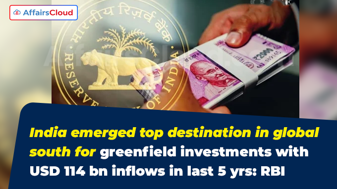 | India emerged top destinations in global south for greenfield investments with USD 114 Bn: RBI report |