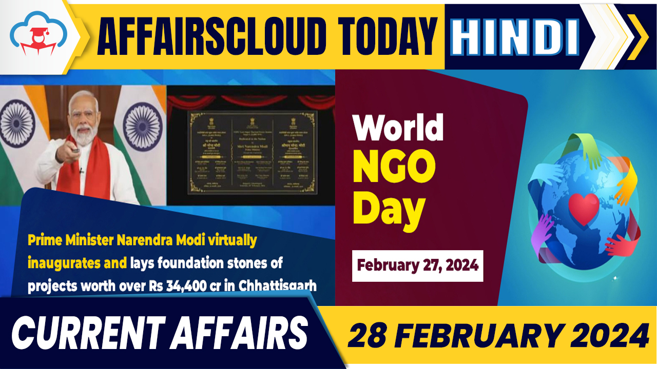 लो दोस्तों, affairscloud.com में आपका स्वागत है। हम यहां आपके लिए 28 फ़रवरी 2024 के महत्वपूर्ण करंटअफेयर्स को विभिन्न अख़बारों जैसे द हिंदू, द इकोनॉमिक टाइम्स, PIB, टाइम्स ऑफ इंडिया, इंडिया टुडे, इंडियन एक्सप्रेस, बिजनेस स्टैंडर्ड,जागरण से चुन करके एक अनूठे रूप में पेश करते हैं। हमारे Current Affairs से आपको बैंकिंग, बीमा, UPSC, SSC, CLAT, रेलवे और अन्य सभी प्रतियोगी परीक्षाओं में अच्छे अंक प्राप्त करने में मदद मिलेगी