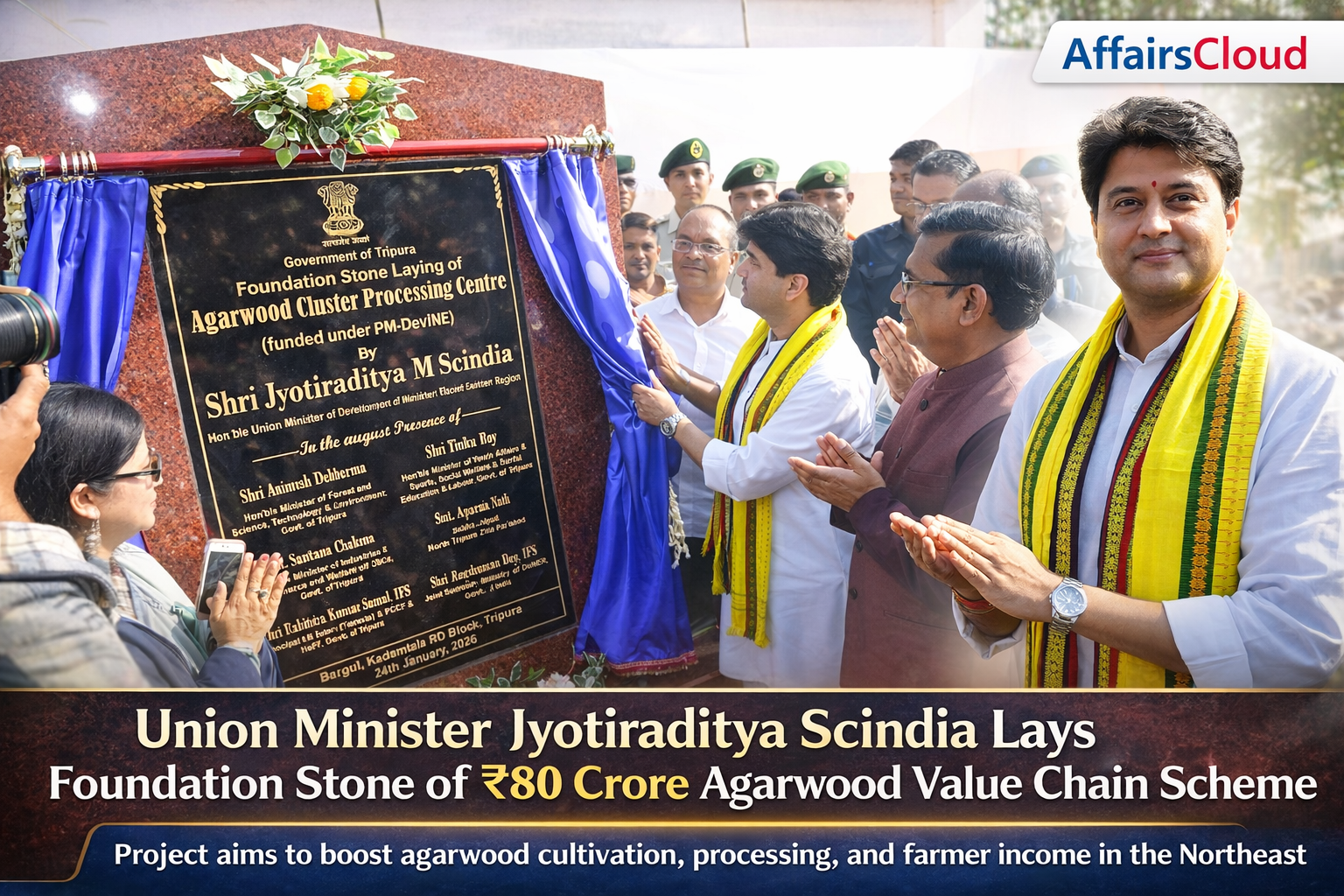 Agarwood Value Chain Development Scheme (AVCDS): Union Minister Jyortiraditya Scindia also laid the foundation stone for the AVCDS in North Fulkabari, Tripura with a financial outlay of Rs 80 crores (Cr).