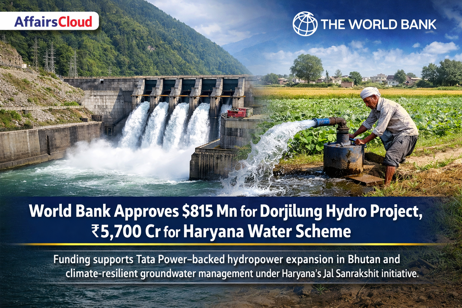 - The WB has also approved a USD 815 million financing package for the 1,125-Megawatt (MW) Dorjilung Hydropower Project in Bhutan.