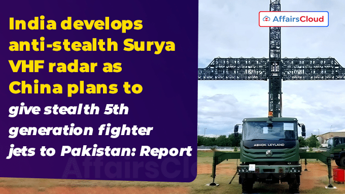 - The Surya VHF radar is a mobile, solid-state three dimensional (3D) radar designed to detect stealth aircraft and low-observable threats, thereby strengthening India’s defense infrastructure.