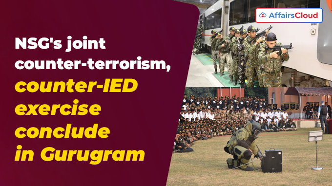 The National Security Guard (NSG) concluded the 10th national joint counter-terrorist exercise ‘Exercise Agnipariksha‘ and the 8th national joint counter-IED exercise ‘Exercise Visfot Kawach‘ at NSG Garrison in Gurugram, Haryana.
