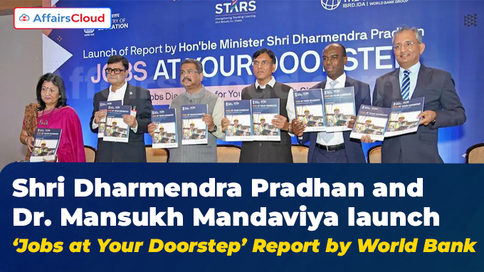 Union Minister Dharmendra Pradhan, Ministry of Education(MoE) and Union Minister Dr. Mansukh Mandaviya, Ministry of Labour and Employment (MoL&E) launched the World Bank’s report titled “Jobs at Your Doorstep: A Jobs Diagnostics for Young People in Six States” during an event held in New Delhi, Delhi.