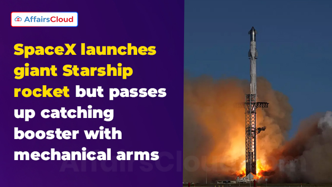 | SpaceX launches the 6th flight test of Starship rocket; aborts attempt to catch booster |