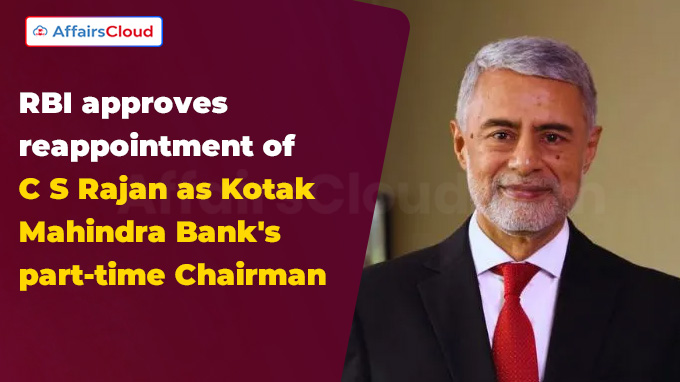 RBI approves the re-appointment of C S Rajan as Part-Time Chairman of Kotak Mahindra Bank