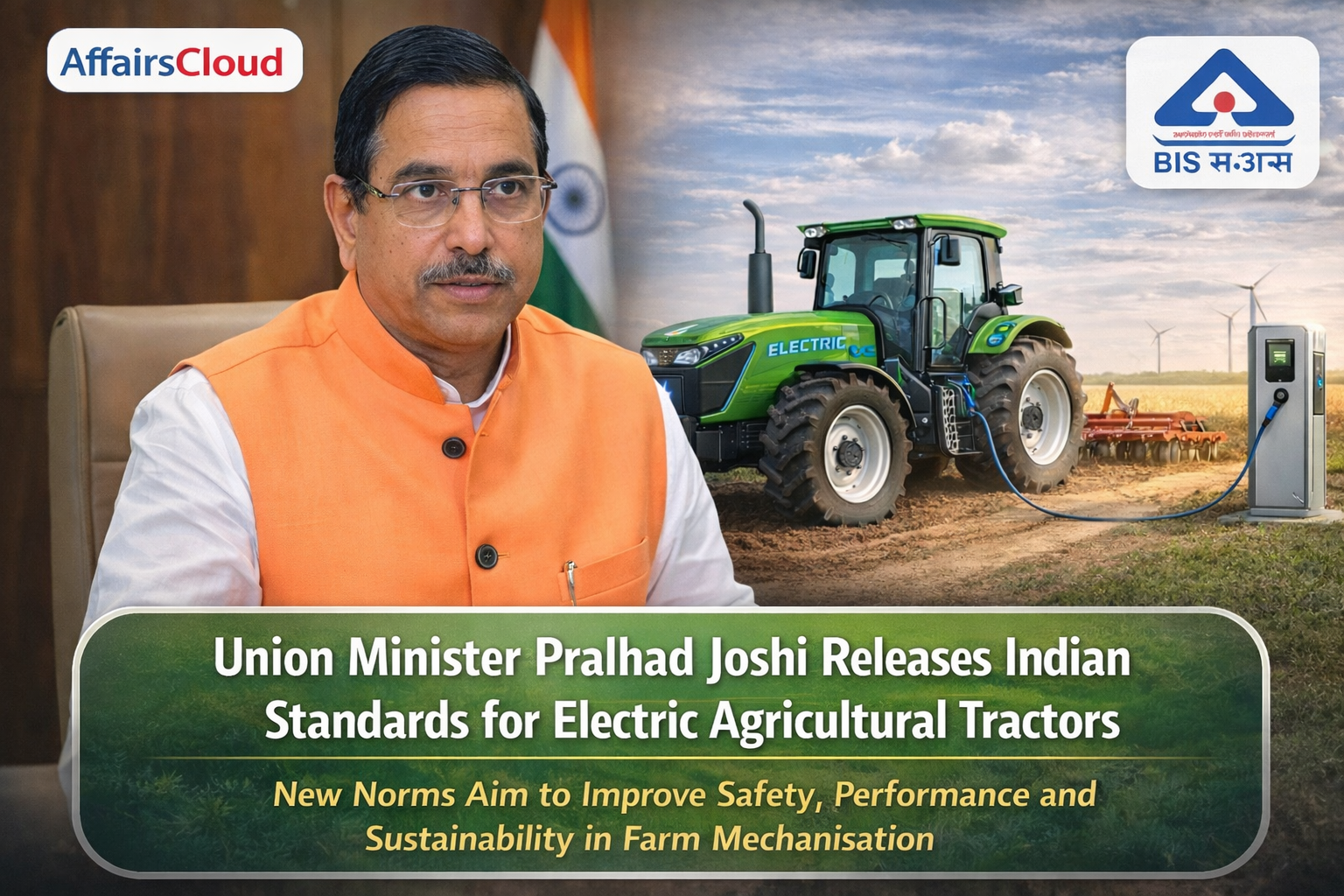 On December 24, 2025, the Union Minister Pralhad Joshi, Ministry of Consumer Affairs, Food & Public Distribution (MoCAF&PD), unveiled a new Indian Standard (IS) 19262: 2025 ‘Electric Agricultural Tractors – Test Code’ on the occasion of National Consumer Day 2025(December 24), held at Bharat Mandapam in New Delhi, Delhi.
