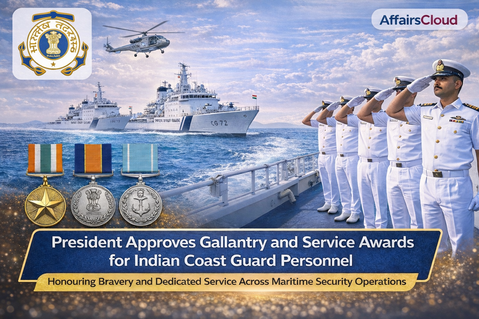 - The awards honour ICG personnel for courage, professionalism, and dedication in safeguarding maritime borders, responding to sea emergencies, and strengthening maritime security.