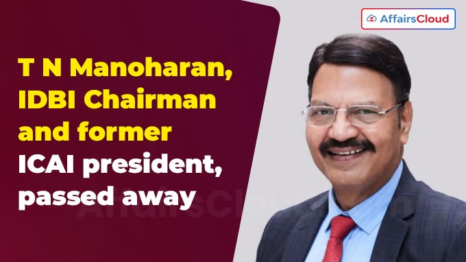Padma Shri Awardee, IDBI Chairman, T. N. Manoharan passed awayOn July 30, 2025, T. N. Manoharan, Padma Shri awardee, Chairman of IDBI Bank, and former President of the Institute of Chartered Accountants of India (ICAI), passed away in Mumbai. He was born on April 7, 1956, in Tamil Nadu.
