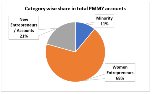 iii.The report has also highlighted that PMMY is an effective tool for women’s empowerment at the grassroots level, as 68% of account holders are women.