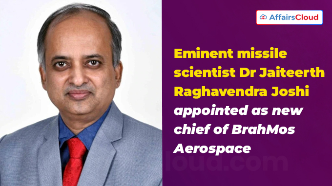 Eminent scientist Dr. Jaiteerth Raghavendra Joshi has been appointed as the new chief of BrahMos Aerospace w.e.f. 1st December 2024.