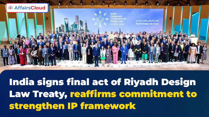India has signed the Final Act of the Riyadh Design Law Treaty (DLT), marking a significant milestone after nearly two decades of negotiations.