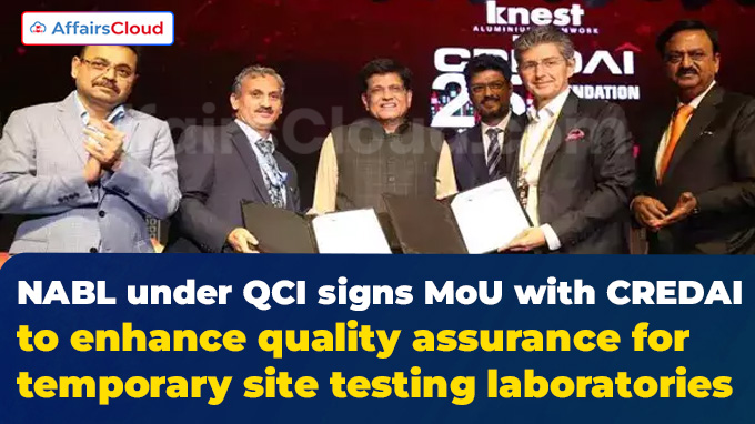 The National Accreditation Board for Testing and Calibration Laboratories (NABL), under the Quality Council of India (QCI), signed a significant Memorandum of Understanding (MoU) with the Confederation of Real Estate Developers Associations of India (CREDAI) to enhance quality standards in temporary site testing laboratories.