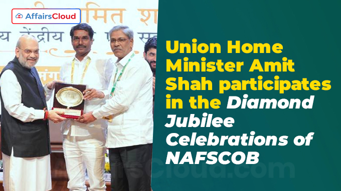 On 26th November 2024, Union Minister Amit Shah, the Ministry of Home Affairs (MoHA) and the Ministry of Cooperation, attended the Diamond Jubilee(60 Years) celebrations of the National Federation of State Co-operative Banks Limited (NAFSCOB) and the national meeting of Rural Cooperative Banks at Bharat Mandapam in New Delhi, Delhi.