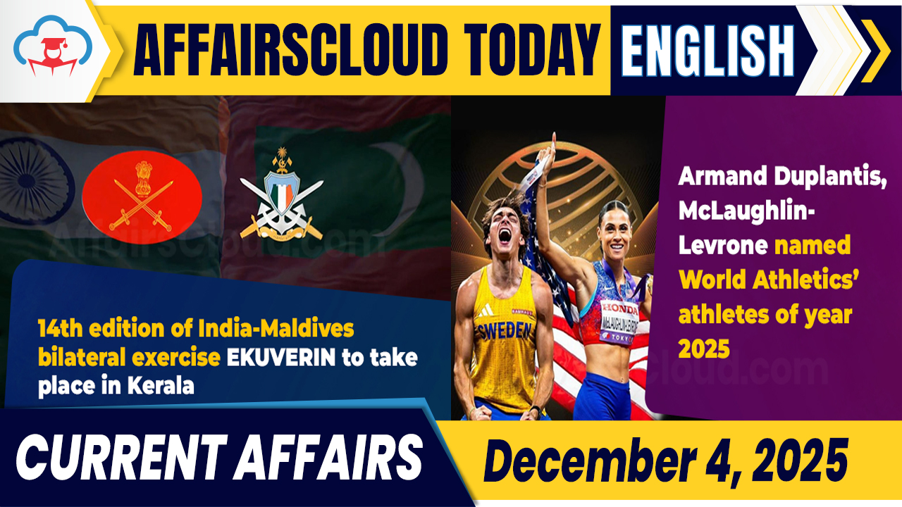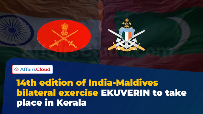 On December 2, 2025, the Indian Army(IA) and the Maldives National Defence Force(MNDF) commenced the 14th edition of the annual bilateral military exercise ‘EKUVERIN’ at Thiruvananthapuram, Kerala. The exercise will continue for two weeks, concluding on 15 December 2025.