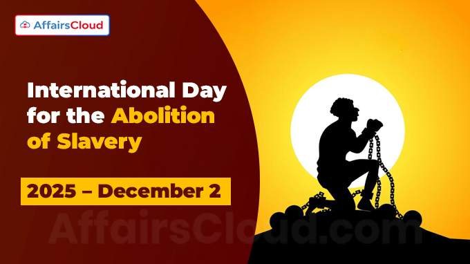 The United Nations (UN’s) International Day for the Abolition of Slavery was annually observed across the globe on 2nd December to raise awareness about ending modern slavery, including human trafficking, sexual exploitation, child labour, forced marriage, and child recruitment in conflicts.