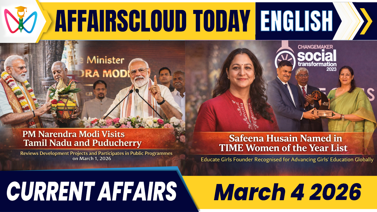 We are here for you to provide the important Recent and Latest Current Affairs March 4 2026, which have unique updates of Latest Current Affairs 2026 events from all newspapers such as The Hindu, The Economic Times, PIB, Times of India, PTI, Indian Express, Business Standard and all Government official websites.