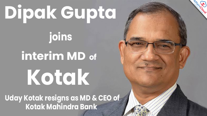 | दीपक गुप्ता ने कोटक महिंद्रा बैंक के अंतरिम MD & CEO का पदभार संभाला; उदय कोटक ने इस्तीफा दिया |